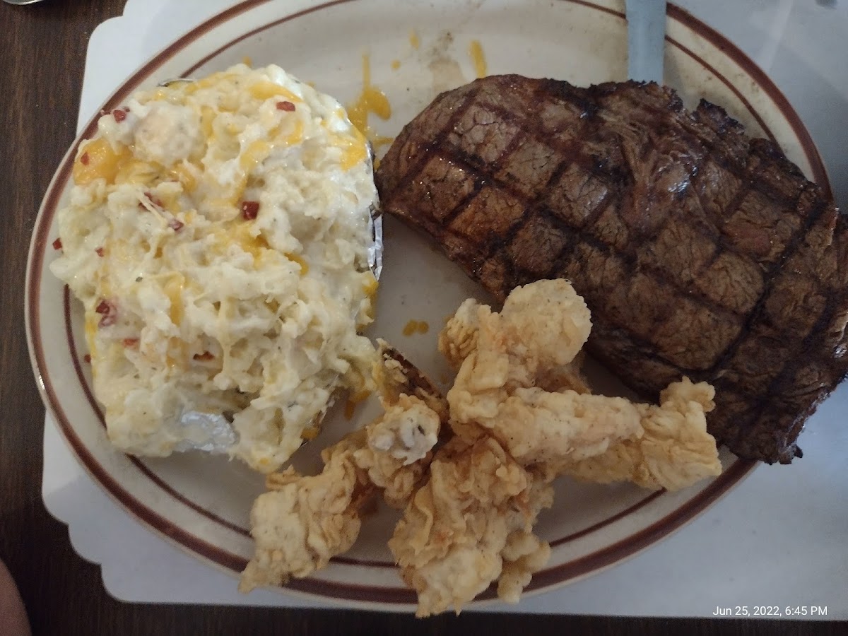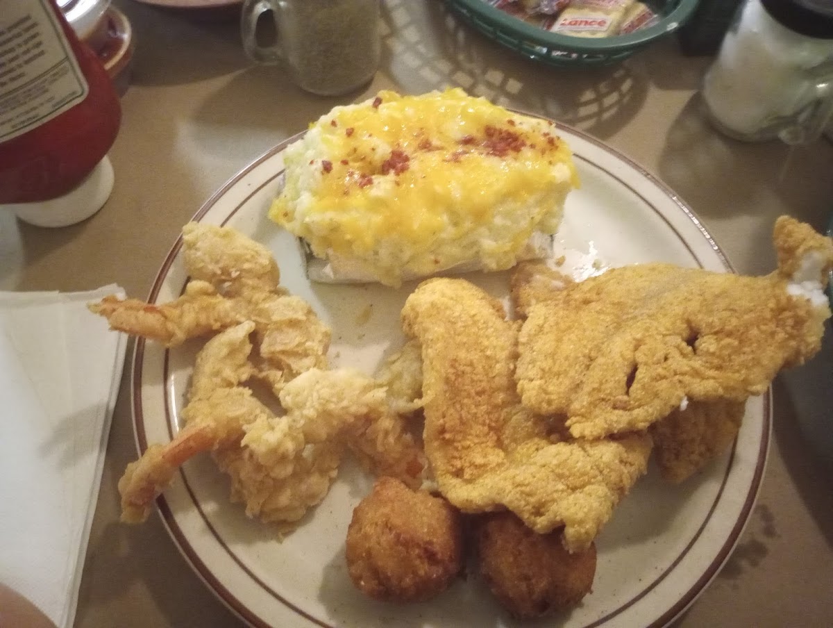 Service was good and food was not as good as it usually is. Proportions where extremely small and highly over priced this visit and the alligator bits where so tough you couldn't chew them, boiled shrimp was not cooked in any seasoning but was covered in Cayenne pepper to the point it wasn't even edible, blooming onion had no flavor to batter and was wat undercooked and the sauce was sweet and just didn't go with it. Was very disappointed especially since prior visits food has been great and reasonably priced, this time it was triple what we normally pay